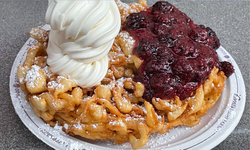The Classic Powdered Sugar Funnel Cake with Strawberry Toppings